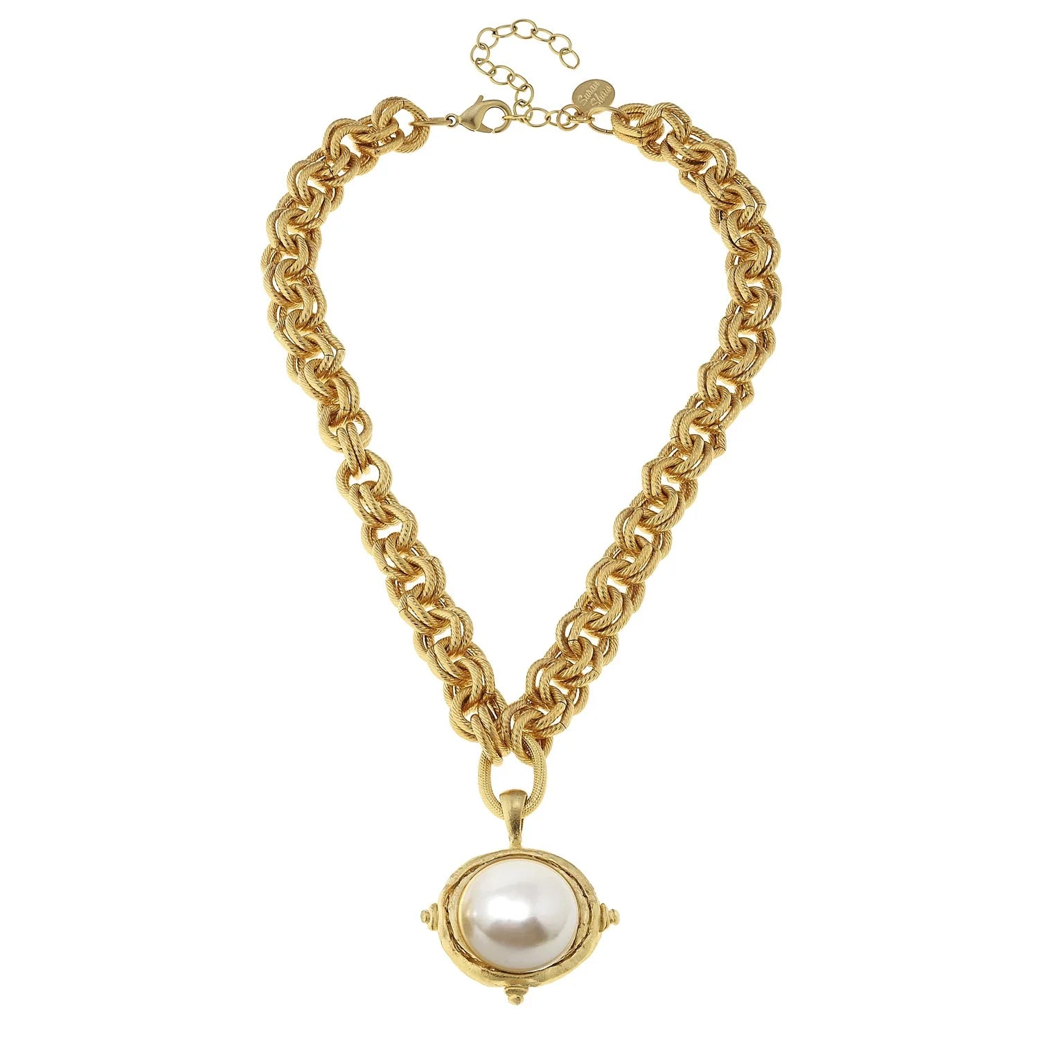 Pair this chunky chain with pearl cab pendant with any wardrobe color and throughout seasons.