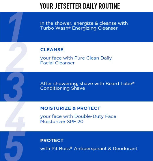 Includes Double-Duty Face Moisturizer SPF 20, Pure Clean Daily Facial Cleanser, Beard Lube® Conditioning Shave, Turbo Wash® Energizing Cleanser for Hair & Body & Pit Boss® Antiperspirant & Deodorant