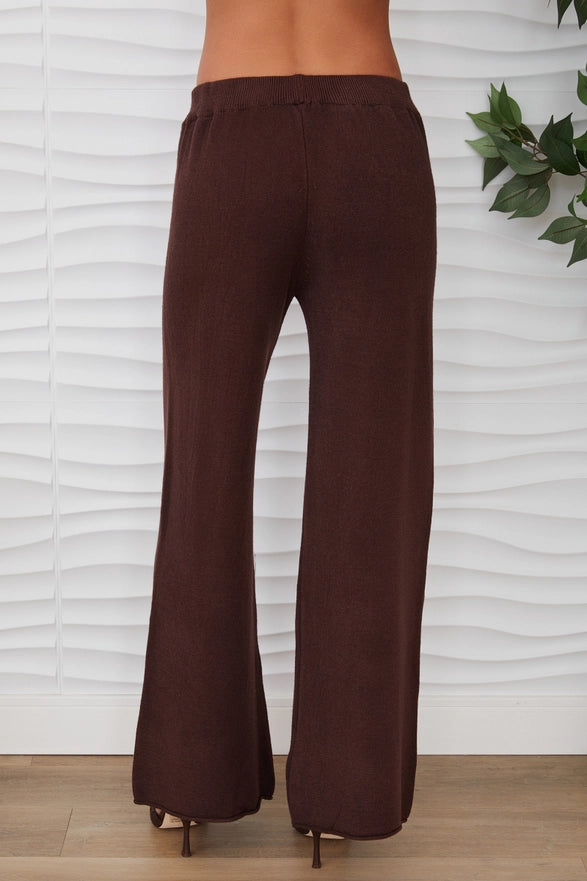 Introducing the viscose knit cozy flared pants. Crafted from breathable, lightweight fabric, this pant offers a comfortable fit with its flared design. The mix of materials ensures excellent mobility, making it perfect for everyday activities. With a sleek and stylish aesthetic, this pant is a must-have for any wardrobe.